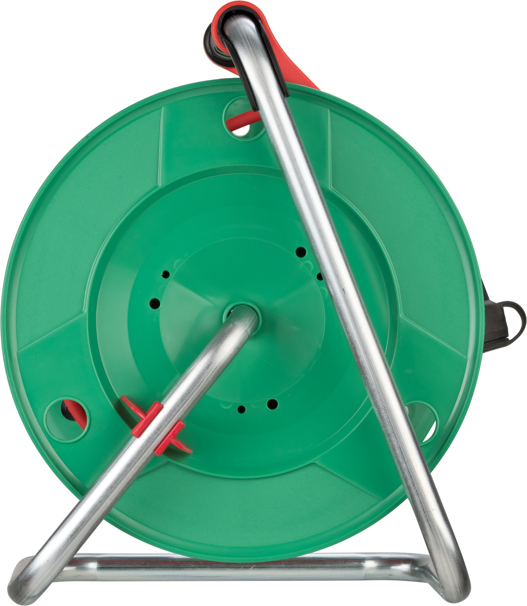 • Garten-Kabeltrommel mit Trommelkörper aus Spezialkunststoff auf verzinktem Tragegestell mit zusätzlichem Überhitzungsschutz und Kontroll-Leuchte bei Überhitzung und Überlastung