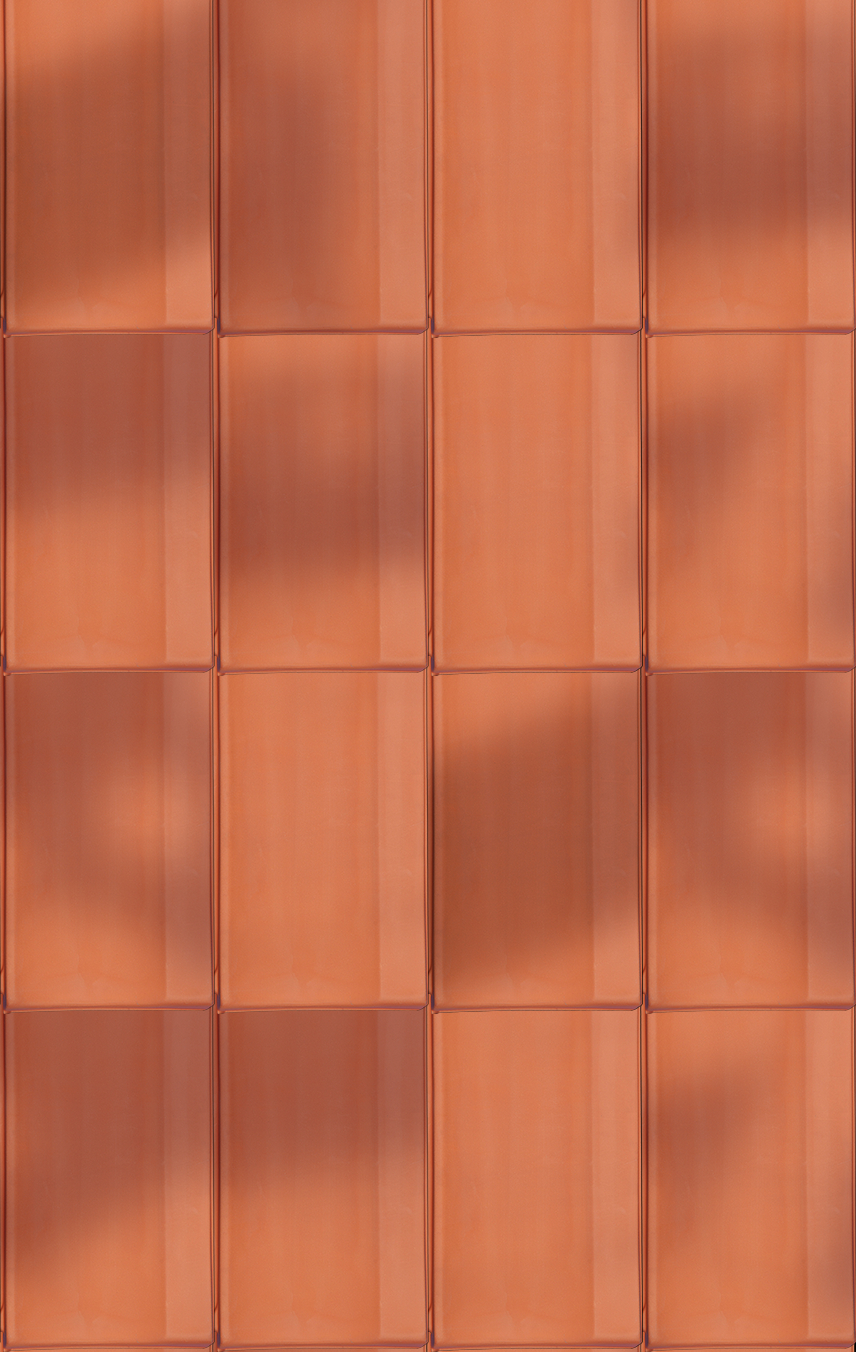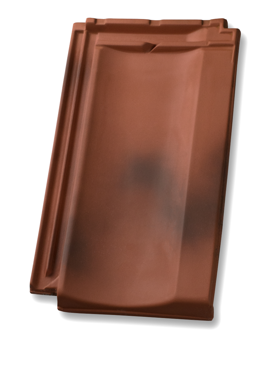 Er ist die größere Variante des Rheinland-Ziegels und sorgt für ebenso ruhig wirkende Dachflächen.