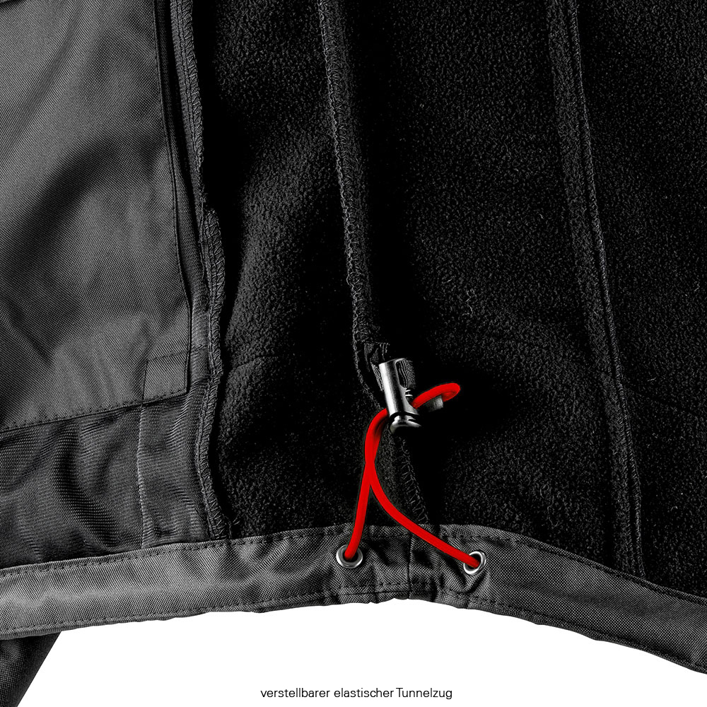Besonders trageangenehm durch die Verbindung von elastischem Gewebe mit körpernaher Schnittform und ergonomisch geformten Ärmeln. Die eingearbeitete Funktionsmembran garantiert eine hohe Wasserdichtigkeit bei gleichzeitig guter Atmungsaktivität des Gewebes. Die wärmende Fleece-Innenseite schützt den Körper vor Auskühlung. Das Ripstop-Gewebe ist besonders reißfest und verhindert bei kleineren Rissen ein Weiterreißen. Besätze an Saum und Ärmelmanschetten aus abriebfestem Oxford-Gewebe verhindern das Abstoßen der Saumkanten. Abzippbare Kapuze mit Verstelloption. Strukturierte Reflexpaspel auf Vorder- und Rückenteil, unterlegter Frontreißverschluss mit Kinnschutz, justierbare Klettmanschetten. 1 Brusttasche mit wasserdichtem Reflex-Reißverschluss, 2 untere Reißverschlusstaschen jeweils mit Zipper-Garage. Kordelzug im Saum und hoher, fleecegefütterter Kragen. Aufwendige Innenverarbeitung mit großer Kapuzen-, Innen- und Handytasche. Vorbereitet zum Einzippen in unsere Außenjacken: TAMPA: 3410=leuchtorange/grau und 3415=leuchtgelb/grau PHILLY: 3301=navy/schwarz, 3307=grau/schwarz und 3308=schwarz