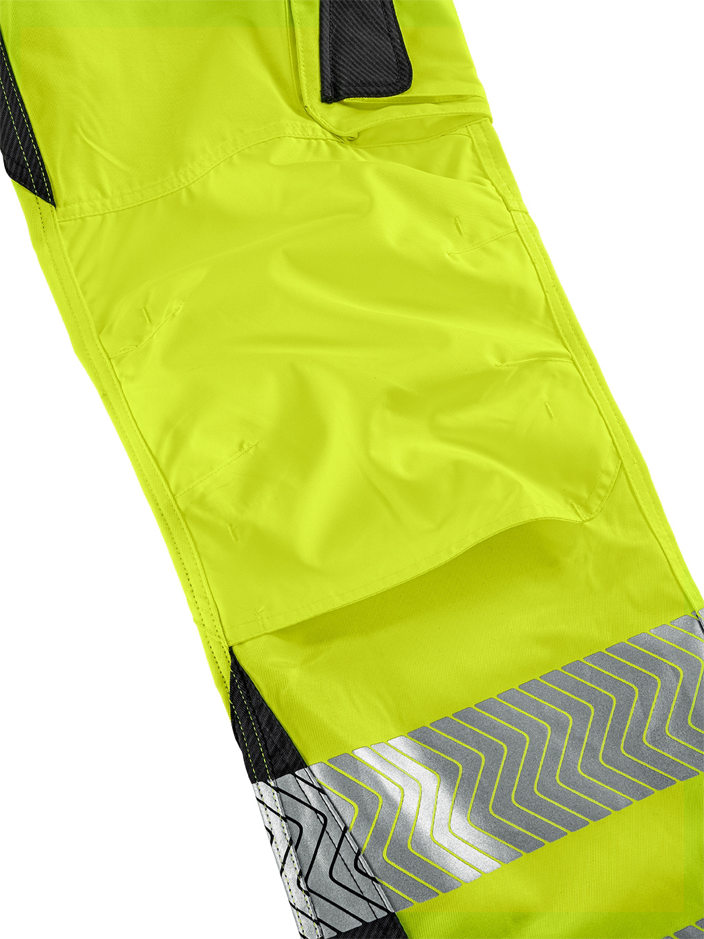 Zertifiziert nach EN ISO 13688:2013 (allgemeine Anforderungen) und EN ISO 20471:2013+A1:2016 (Warnschutz) Klasse 2. Hervorragende Passform dank ergonomischer, körpernaher Schnittform in Verbindung mit Stretcheinsätzen. Das belastbare Twill-Gewebe ist gleichzeitig angenehm weich und geschmeidig. Segmentierte, auflaminierte, extra breite (7cm) Reflexstreifen, umlaufend um die Beine. Dunkel abgesetzte Besätze an den Innenbeinen, Gesäß und Tascheneingriffen verhindern leichtes Anschmutzen. Knietaschen, sowie Taschenböden und Hosensäume aus abriebfestem Oxford-Gewebe. Eine Cargotasche auf dem linken Hosenbein mit vorgesetzter Handy- und Stifttasche. 2 Eingriffstaschen vorn, 2 Gesäßtaschen, eine mit und eine ohne Taschenklappe. Zollstocktasche und Hammerschlaufe auf der rechten hinteren Beinseite. Latz mit aufgesetzter, großer Klappentasche. Elastische Hosenträger mit Verstellschnallen. Diese Bekleidung ist zusätzlich im System mit dem Knieschutz (Art. 8400) nach EN 14404:2010, Typ 2, Leistungsstufe 1 zertifiziert.