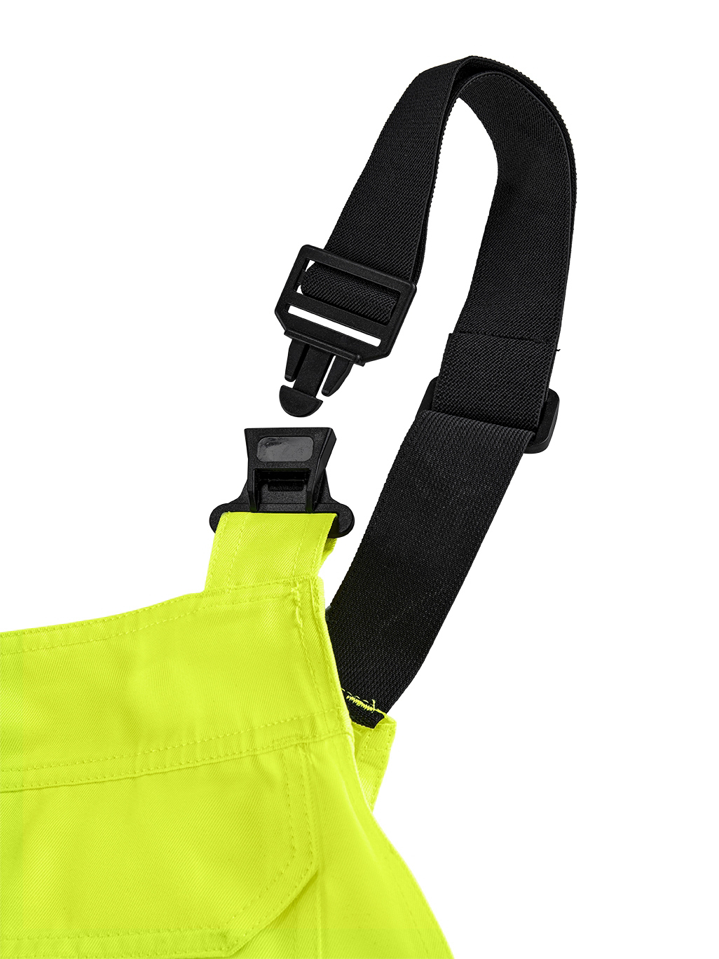 Zertifiziert nach EN ISO 13688:2013 (allgemeine Anforderungen) und EN ISO 20471:2013+A1:2016 (Warnschutz) Klasse 2. Hervorragende Passform dank ergonomischer, körpernaher Schnittform in Verbindung mit Stretcheinsätzen. Das belastbare Twill-Gewebe ist gleichzeitig angenehm weich und geschmeidig. Segmentierte, auflaminierte, extra breite (7cm) Reflexstreifen, umlaufend um die Beine. Dunkel abgesetzte Besätze an den Innenbeinen, Gesäß und Tascheneingriffen verhindern leichtes Anschmutzen. Knietaschen, sowie Taschenböden und Hosensäume aus abriebfestem Oxford-Gewebe. Eine Cargotasche auf dem linken Hosenbein mit vorgesetzter Handy- und Stifttasche. 2 Eingriffstaschen vorn, 2 Gesäßtaschen, eine mit und eine ohne Taschenklappe. Zollstocktasche und Hammerschlaufe auf der rechten hinteren Beinseite. Latz mit aufgesetzter, großer Klappentasche. Elastische Hosenträger mit Verstellschnallen. Diese Bekleidung ist zusätzlich im System mit dem Knieschutz (Art. 8400) nach EN 14404:2010, Typ 2, Leistungsstufe 1 zertifiziert.