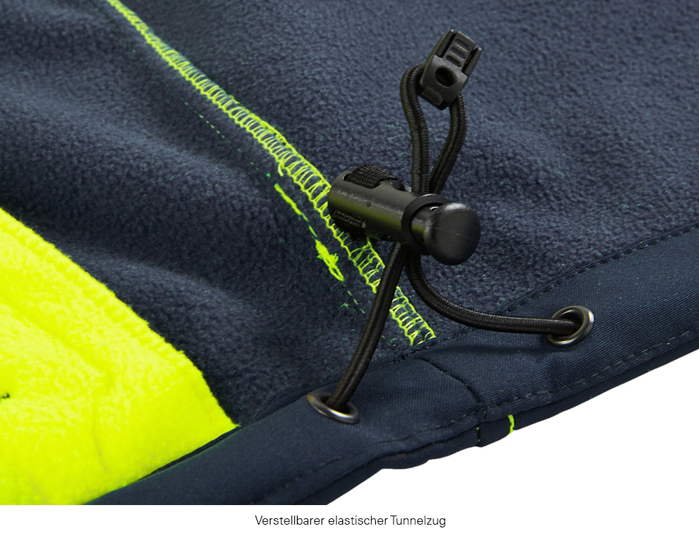 Zertifiziert nach EN ISO 13688:2013 (allgemeine Anforderungen), EN ISO 20471:2013+A1:2016 (Warnschutz) Klasse 2. Hohe Bewegungsfreiheit durch flexibles, elastisches Gewebe mit winddichten Eigenschaften. Wasserabweisende Außenschicht bei guter Atmungsaktivität. Aufgenähte Reflexstreifen, umlaufend um Körper und Ärmel sowie auf Schultern. Dunkel abgesetzter Saum- und Manschettenbereich verhindert leichtes Anschmutzen. Unterlegter Front-Reißverschluss mit Kinnschutz, justierbare Klettmanschetten. 2 Brusttaschen mit wasserdichten Reißverschlüssen und Zipper-Garage, 2 untere Reißverschluss-Taschen. Kordelzug im Saum und hoher, fleecegefütterter Kragen halten die Wärme in der Jacke.