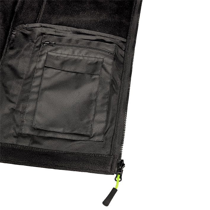 Wasser- und windabweisendes Material in Strickoptik mit wärmender Fleeceinnenseite. Komfortable Atmungsaktivität. Strukturierte Reflexpaspel in Ärmelnaht auf Vorder- und Rückseite. 1 Brusttasche mit wasserdichtem Reflex-Reißverschluss rechts, 2 untere Reißverschluss-Taschen. Alle Reißverschlüsse mit Reißverschluss-Garage (verhindert evtl. Kratzspuren auf Werkstoffen). Im Futter 1 Handy-Tasche mit dahinterliegender Reißverschluss-Tasche, sowie 1 große Innentasche. Komfortable Strickbündchen. Unterlegter Front-Reißverschluss mit Kinnschutz, Kordelzug im Saum. Vorbereitet zum Einzippen in unsere Außenjacken: TAMPA: 3410=leuchtorange/grau und 3415=leuchtgelb/grau PHILLY: 3301=navy/schwarz, 3307=grau/schwarz und 3308=schwarz