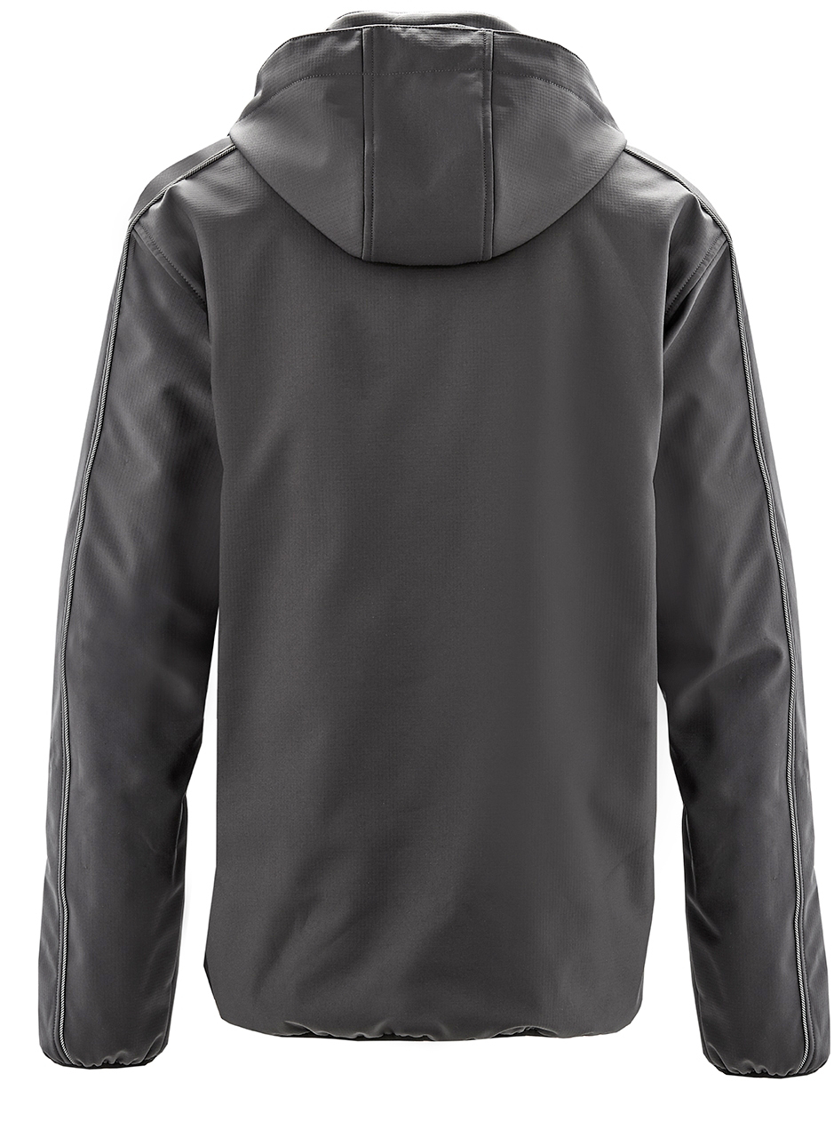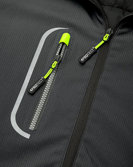 Garantiert wärmend und windabweisend bei geringem Gewicht. Die eingearbeitete Funktionsmembran garantiert eine hohe Wasserdichtigkeit bei gleichzeitig guter Atmungsaktivität des Gewebes. Die wärmende, gesteppte Innenwattierung in Kombination mit der Fleece-Innenseite schützt den Körper vor Auskühlung. Das Ripstop-Gewebe ist besonders reißfest und verhindert bei kleineren Rissen ein Weiterreißen. Abzippbare Kapuze mit drei Verstelloptionen. Strukturierte Reflexpaspel auf Vorder- und Rückenteil, unterlegter Frontreißverschluss mit Kinnschutz, elastische Ärmelabschlüsse. 1 Brusttasche mit wasserdichtem Reflex-Reißverschluss und Zipper-Garage, 2 untere Eingrifftaschen mit Handwärmefutter. Elastischer Saumabschluss, wattierter Kragen. Aufwendige Innenverarbeitung mit großer Kapuzen-, Innen- und Handytasche.