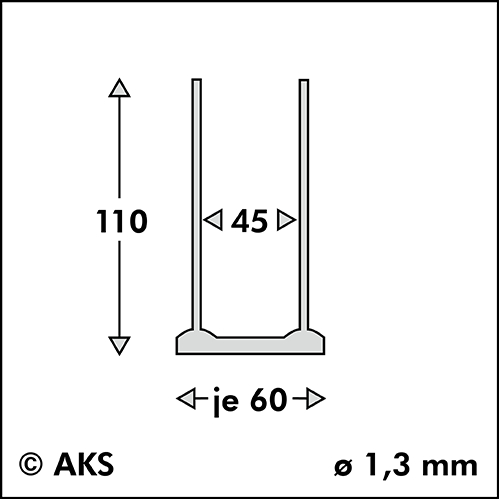 2-reih.,0,5m,BxH=60x110mm,Ø1,3mm, VA/PC
