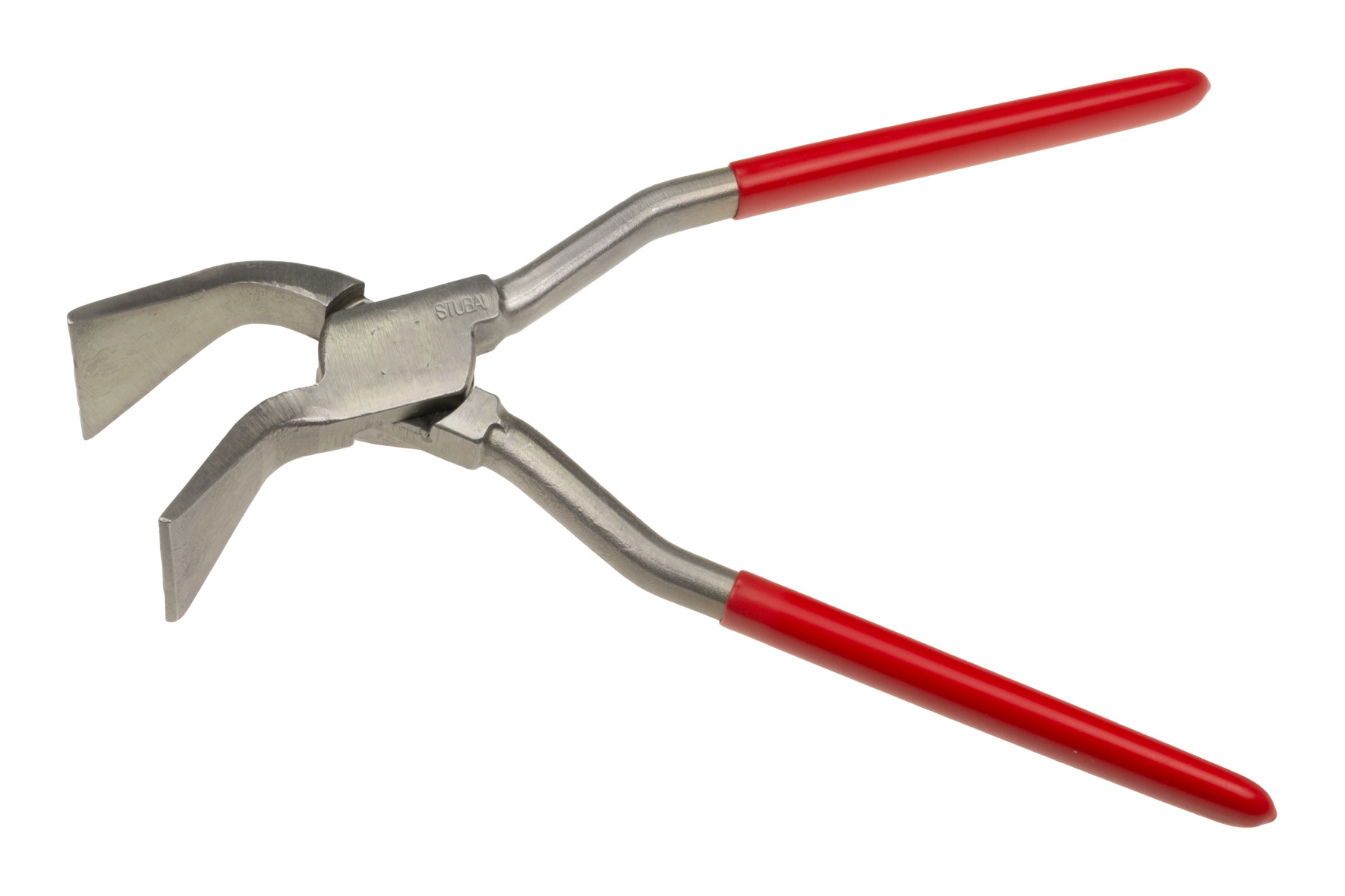 45° gebogene Falzzange Soft, alle Ecken und Kanten extra stark abgerundet, für eine optimale Handhabung, Schenkel rot kunststoffbeschichtet.