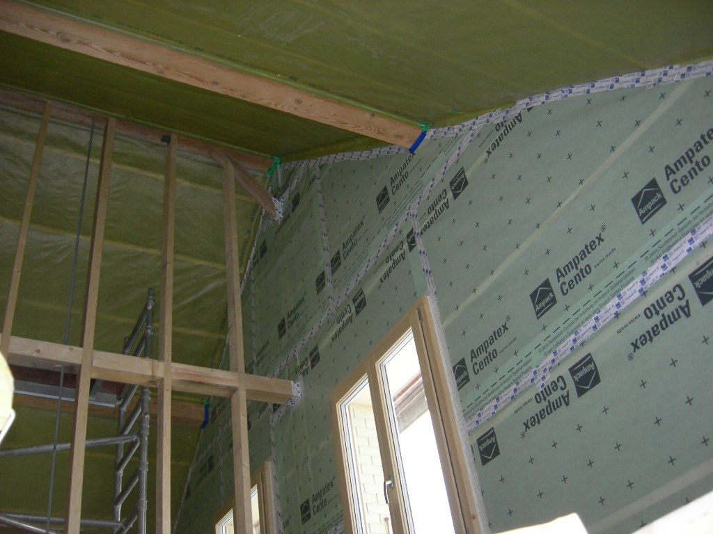 Zweilagige reissfeste Dampfbremse und Luftdichtung mit hohem sd-Wert für Holzkonstruktionen mit diffusionsdichteren Schichten auf der Aussenseite wie z. B. geklebte Vollwärmeschutz-Fassaden in Verbindung mit dampfdichteren Dämmmaterialien. Auch geeignet für Innendämmungen bei älteren Mauerwerkskonstruktionen. Für Ausblasdämmung geeignet. Trägervlies aus Polypropylen (PP) mit einer Spezialmembrane aus Polyolefin.