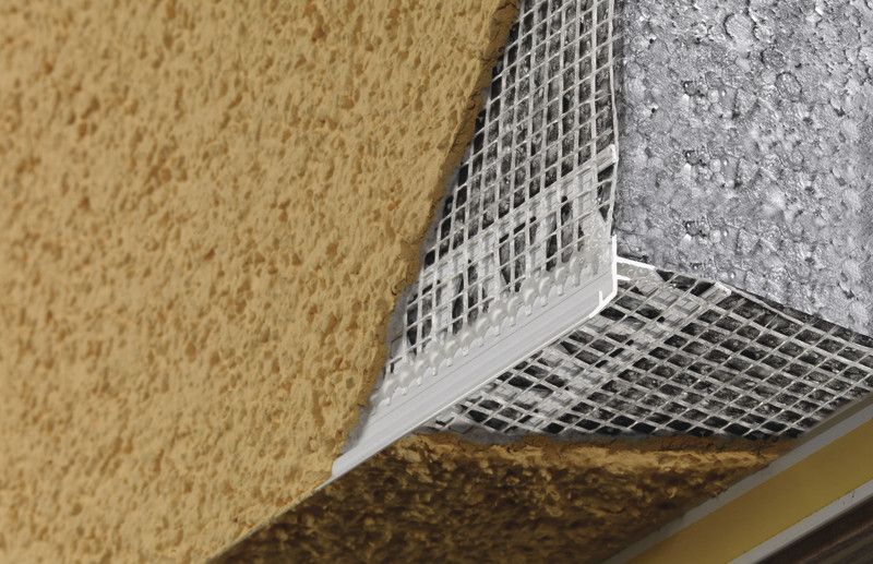 Tropfkantenprofil aus PVC für Wärmedämm-Verbundsysteme zur Herstellung eines sauberen Abschlusses, z.B. bei gedämmten Durchfahrten und Balkonuntersichten.