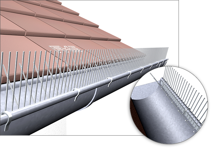 PIXX®- Rinne Sperling ist speziell für Dachrinnen konzipiert, um das Anfliegen und Absitzen von Sperlingen und anderen Kleinvögeln an der Rinnenwulst zu verhindern.