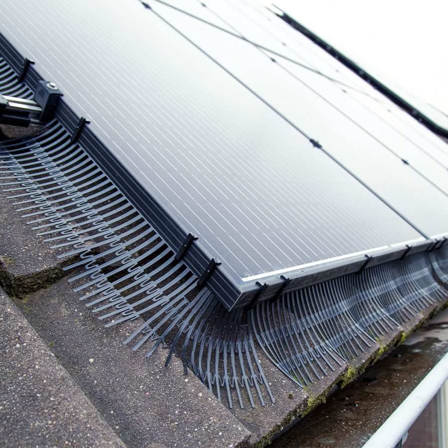 Vogelschutz für Solarmodule, der Schäden an der PV- oder Solarthermieanlage, die z. B. durch brennende Vogelnester verursacht werden, vorbeugt.