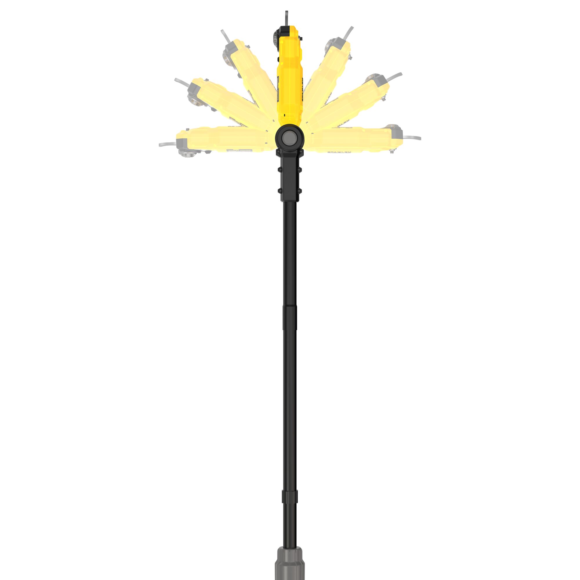 Klappbares Stangensystem: Bis zu 2,4 m Länge für hohe Reichweite und platzsparende Lagerung