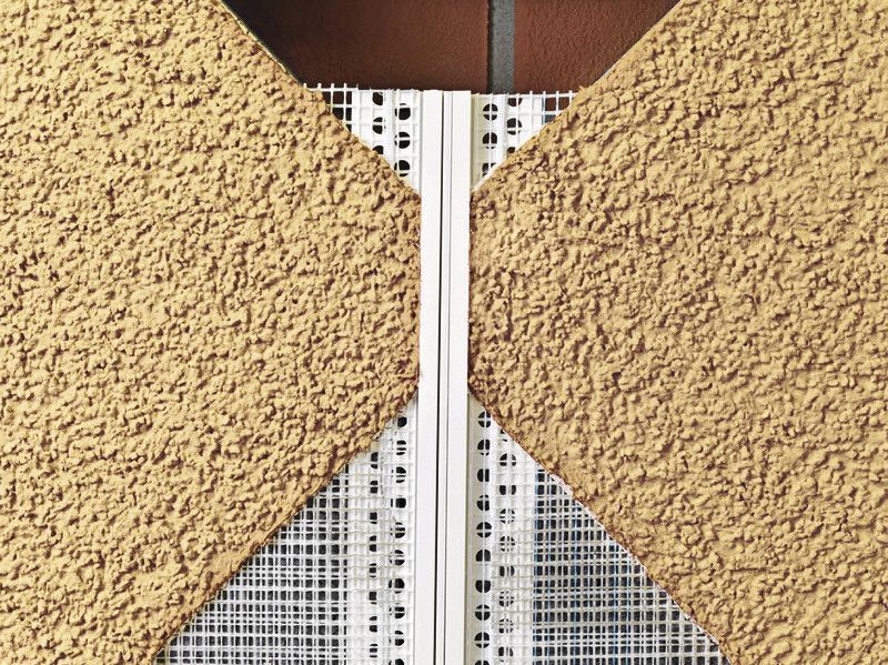 Dehnungsfugenprofil aus PVC, mit alkalibeständigem weißem Glasfasergewebe für Innen- und Außenputze und Innenecken ab 6 mm Putzdicke.