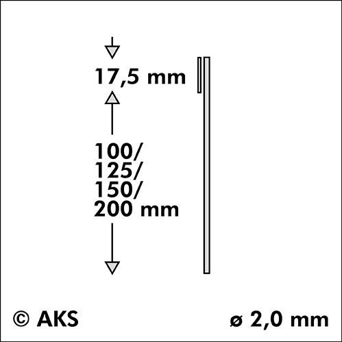 1-reih., 0,5m, H=200mm, Ø2mm, VA