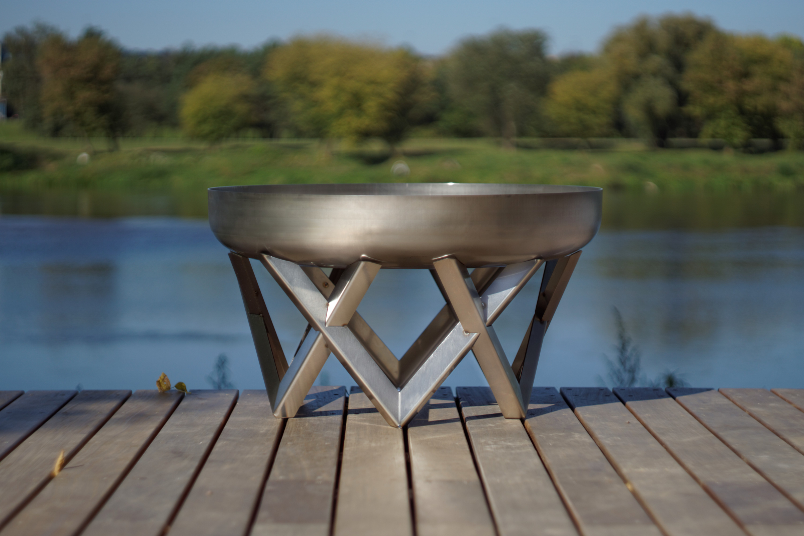 Design Feuerschale VENTA Größe Super XXL - Edelstahl-Basis mit Feuerschale aus massivem Rohstahl 2,5 mm (rostend)