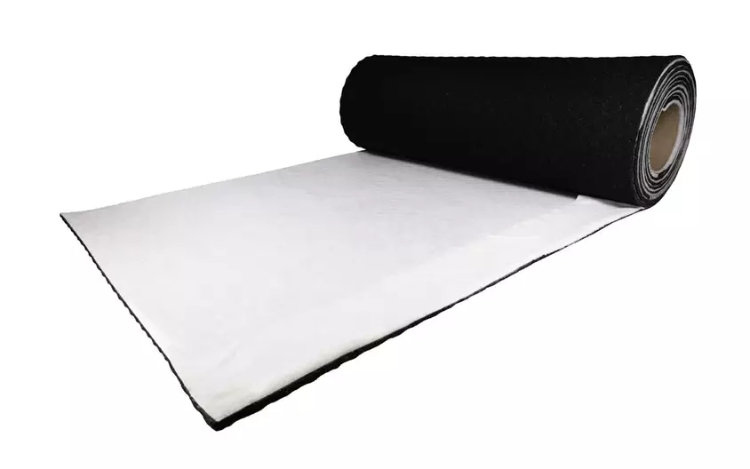 - Material: PUR-gebundene Gummigranulatmatte, oberseitig mit Filtervlies beklebt
