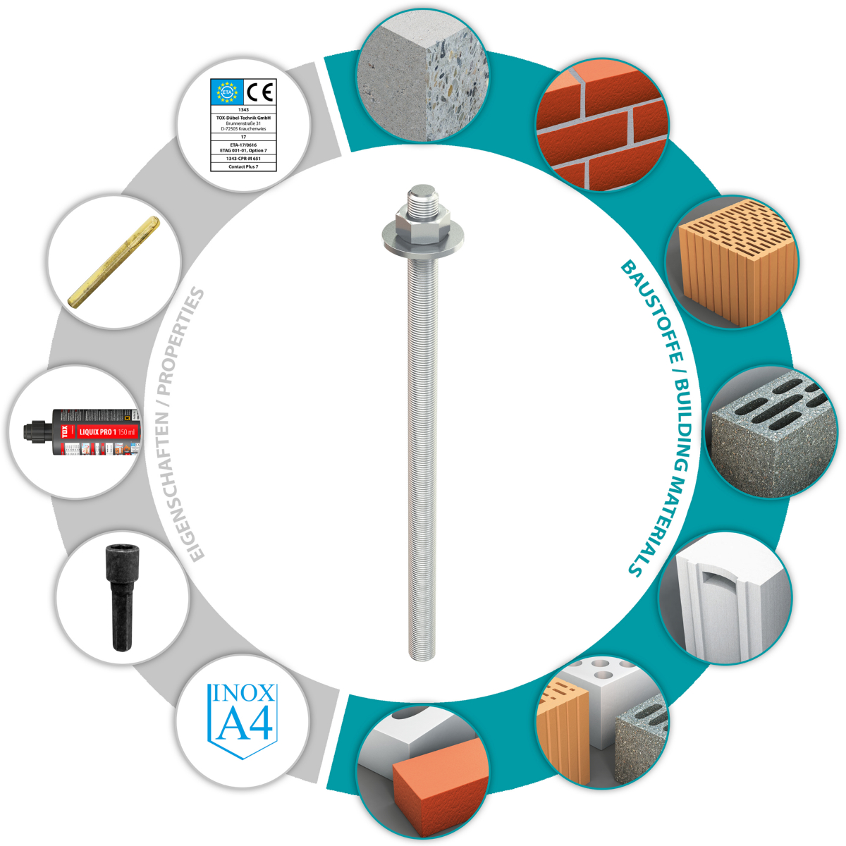 - Die Stix Ankerstange ist in den Zulassungen für Verbundanker Contact und Verbundmörtel Liquix Pro 1 und Liquix Plus 7 erfasst