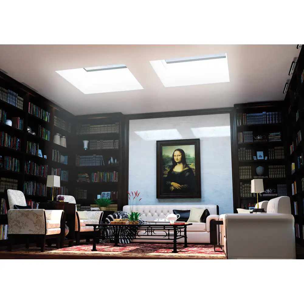 - Die Konstruktion des Flachdach-Fensters ermöglicht die Montage von Innen- und Außenzubehör,