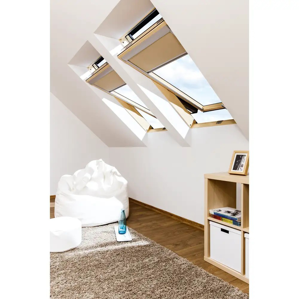 Schwingfenster stellen die einfachste, aber am häufigsten genutzte Fenstervariante im Dachbereich dar. Die Konstruktion der Beschläge ermöglicht eine sichere Stellung des geöffneten Flügels in allen Positionen sowie ein Umschwenken des Fensters um 180 Grad in eine arretierbare Putzstellung. Eine bequeme Bedienung ist aufgrund des im unteren Teil des Fensters angebrachten Griffs selbst bei höher verbauten Fenstern gewährleistet. Die automatische Dauerlüftung V40P sorgt für einen effektiven Zustrom von frischer Luft und sichert ein gesundes Mikroklima im Dachgeschoss.