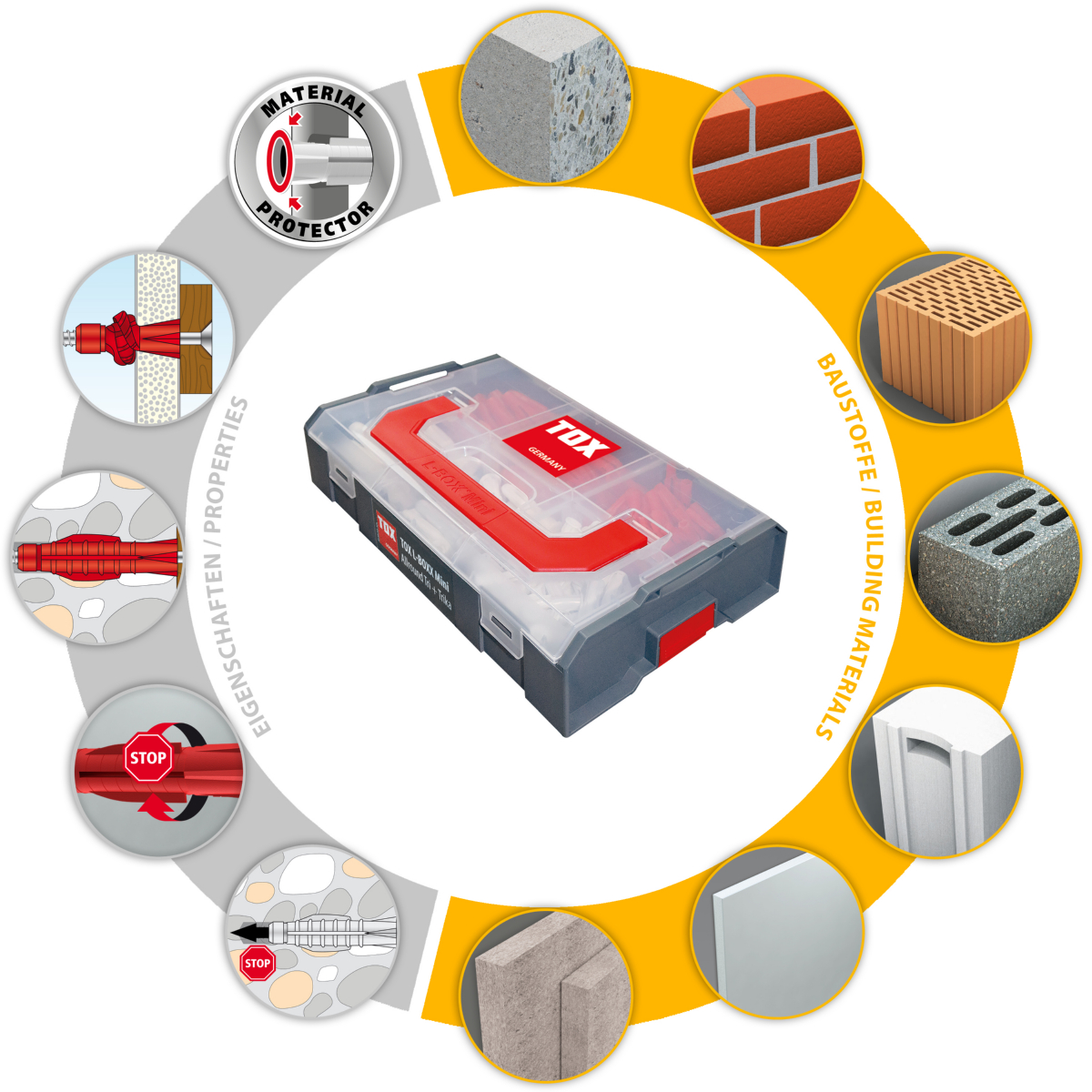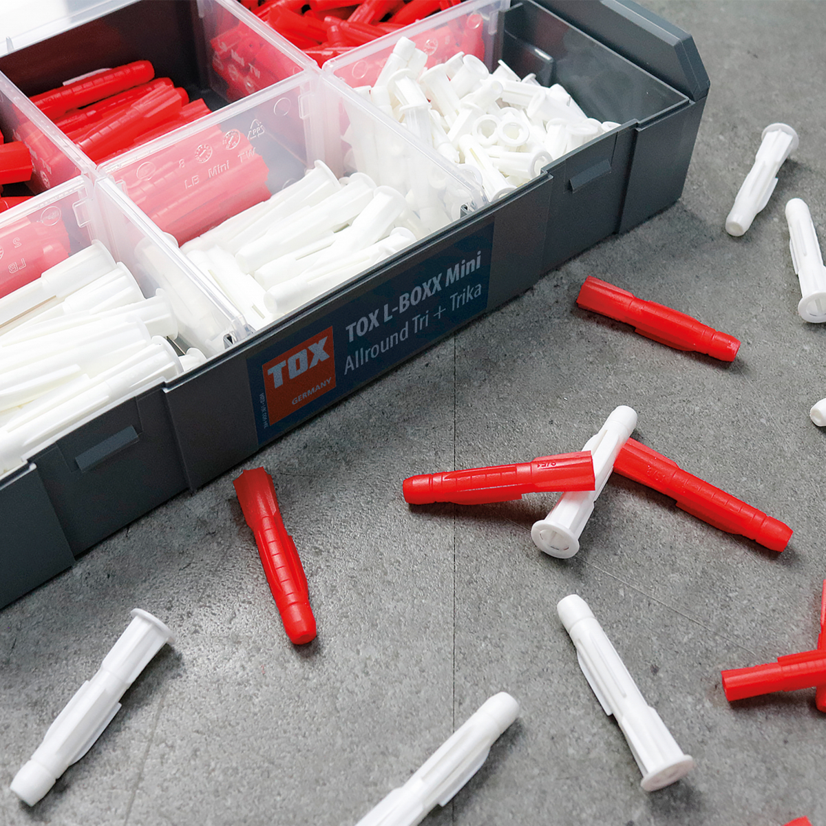- Das L-BOXX Mini Allround Tri + Trika Sortiment beinhaltet die gängigsten Dübelgrößen des Allzweckdübels Tri und Trika