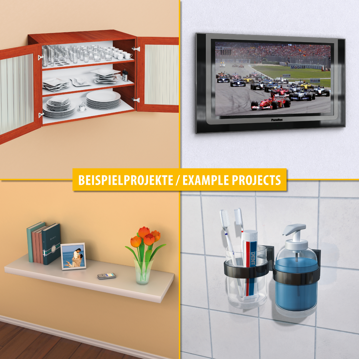 - Mindest-Schraubenlänge = Dübellänge + Anbauteildicke + 5 mm
