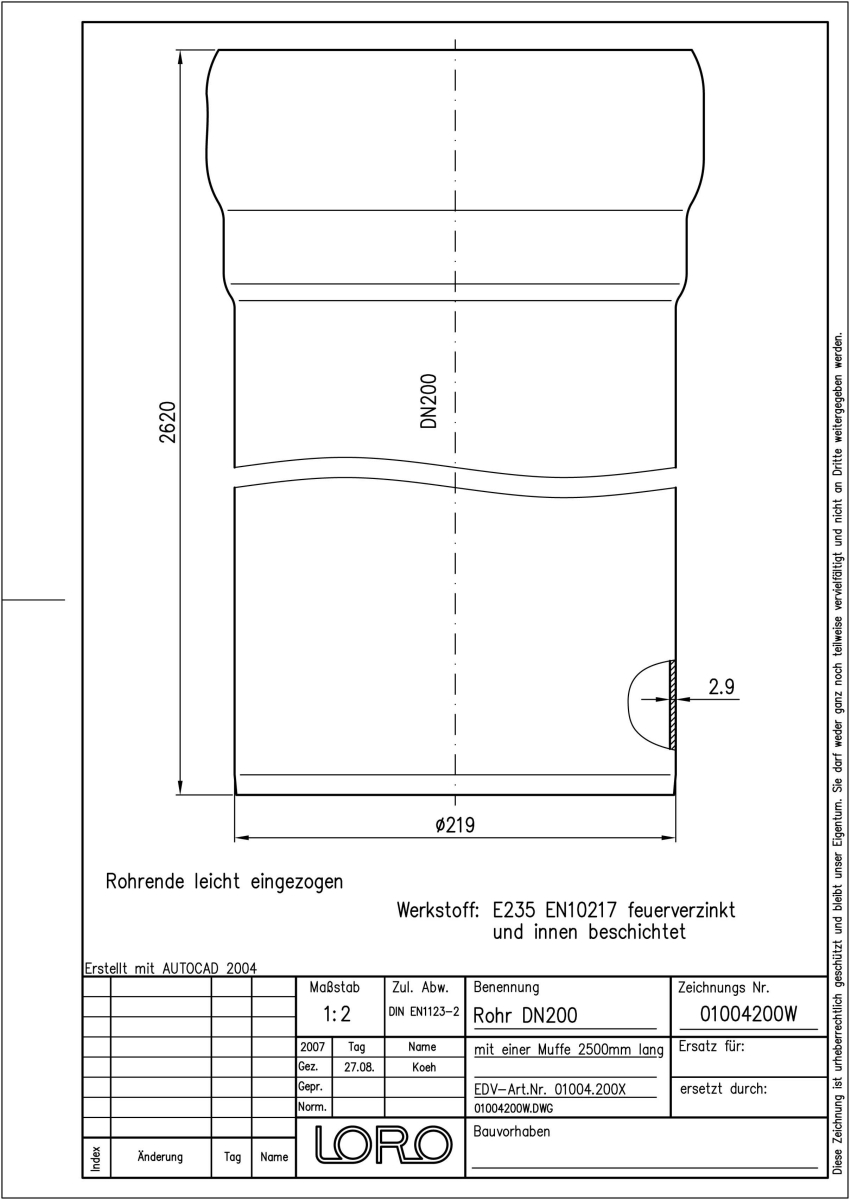 DN 200, 2,5m, Steckm., fvz