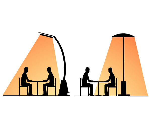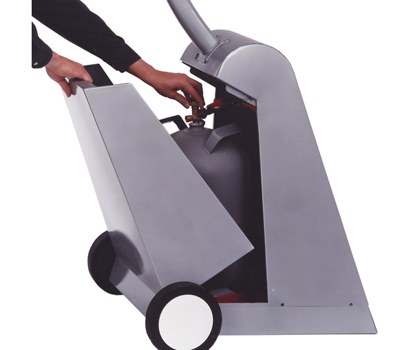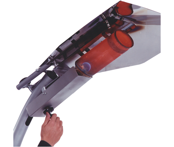 Die Abstrahlung ist genau auf die zu erwärmende Fläche einstellbar, so dass keine ungenutzten Flächen beheizt werden. Zum Öffnen und Schließen bzw. Wechseln der Gasflasche wird die Gehäuseabdeckung leichgängig nach hinten geklappt. Durch Drehen des Einstellknopfes kann der Reflektor exakt auf die Personengruppe ausgerichtet werden.