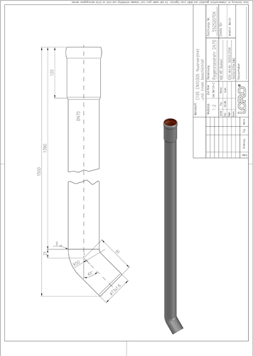 LORO-X Regenstandrohr, aus Stahl, feuerverzinkt, rund, ohne Reinigungsöffnung mit integriertem Auslaufbogen 45 Grad, nach DIN EN 1123 mit erhöhtem Qualitätsstandard gemäß RAL-Gütezeichen GZ-694, mit 2-Kammern-Steckmuffenverbindung, Baustoffklasse A1, formstabil, bruchfest, rückstausicher, langlebige Innenbeschichtung gemäß DIN EN ISO 2178 auf Basis einer 2K-Epoxid-Kombination, Farbton: Rotbraun, 1500 mm, DN 70