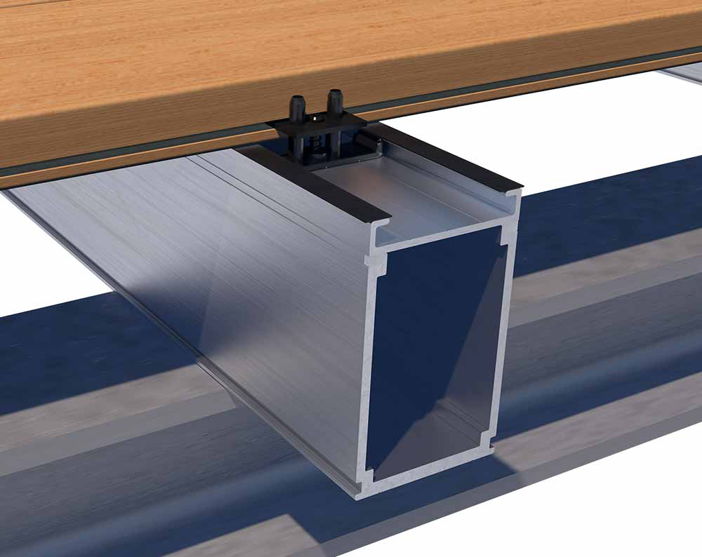 Das MaTre-Band dient zur Materialtrennung und verhindert somit Knarr-Geräusche zwischen den Alu-Profilen und Dielen.