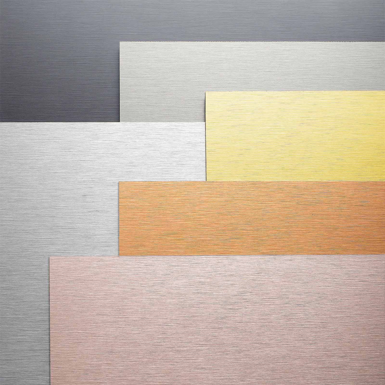 BUTLERFINISH-Oberflächen gibt es in Aluminium Naturton, Gold, Kupfer und Edelstahl.