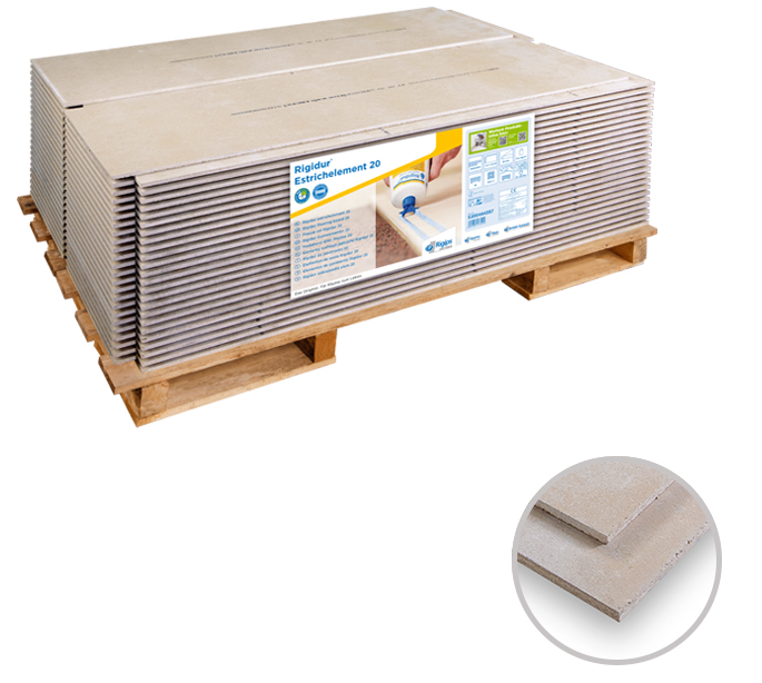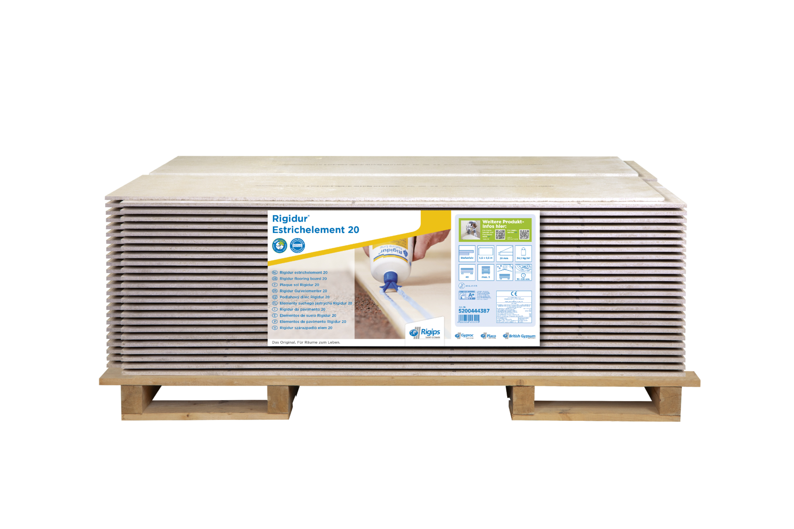 Das Rigidur Estrichelement 20 von Rigips besteht aus vorgrundierten Gipsfaserelementen mit Stufenfalz ohne unterseitige Kaschierung. Es verfügt über eine extrem harte und glatte Oberfläche und dient zur schnellen Herstellung von Trockenestrichböden, auch mit Brandschutzanforderungen, in Neubauten und Altbausanierungen. Geeignet für den Aufbau mit Fußbodenheizung (gem. Herstellerangaben).