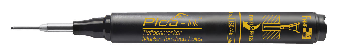 - 3-fache Markierleistung durch die bewegliche und selbst nachstellende Teleskopspitze: volle Nutzung von 7 mm Abrieb des Schreibdochts, anstatt 2 mm