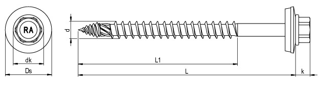 Bohrschraube für spanfreies Verschrauben von Aluminium- und Stahlprofilblechen auf Holzunterkonstruktionen.
