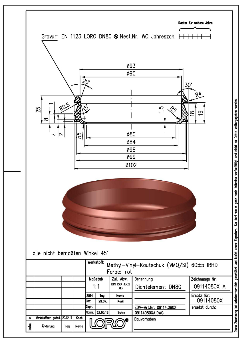 LORO-X Dichtelement aus Methyl-Vinyl-Kautschuk (VMQ), Farbton: rot, DN 80