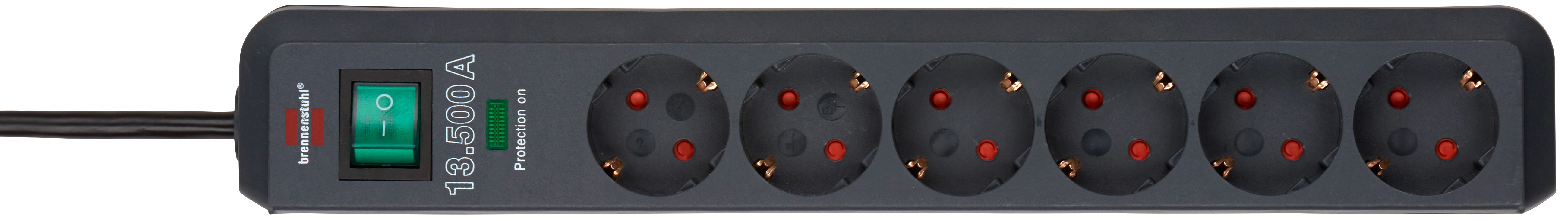 Eco-Line Steckdosenleiste 6-fach mit Überspannungsschutz 13.500 A (Steckerleiste mit erhöhtem Berührungsschutz, Schalter und 1,5m Kabel)