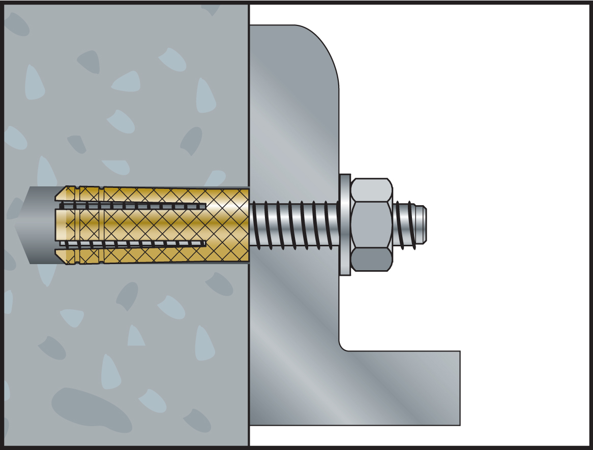 - Einschraubtiefe der metrischen Schraube entspricht circa der Dübellänge (auch abhängig von der Festigkeit des Untergrunds)