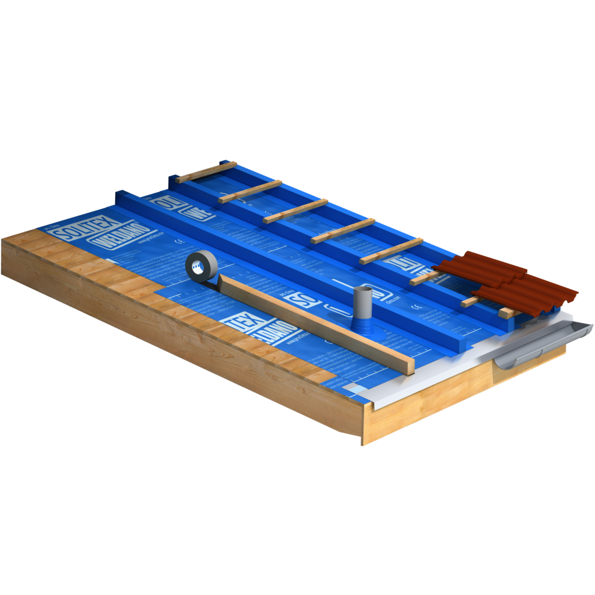 Geeignet zur Verlegung auf druckfestem Untergrund, z. B. Holzschalungen, Holzwerkstoffplatten und Holzfaserunterdeckplatten.