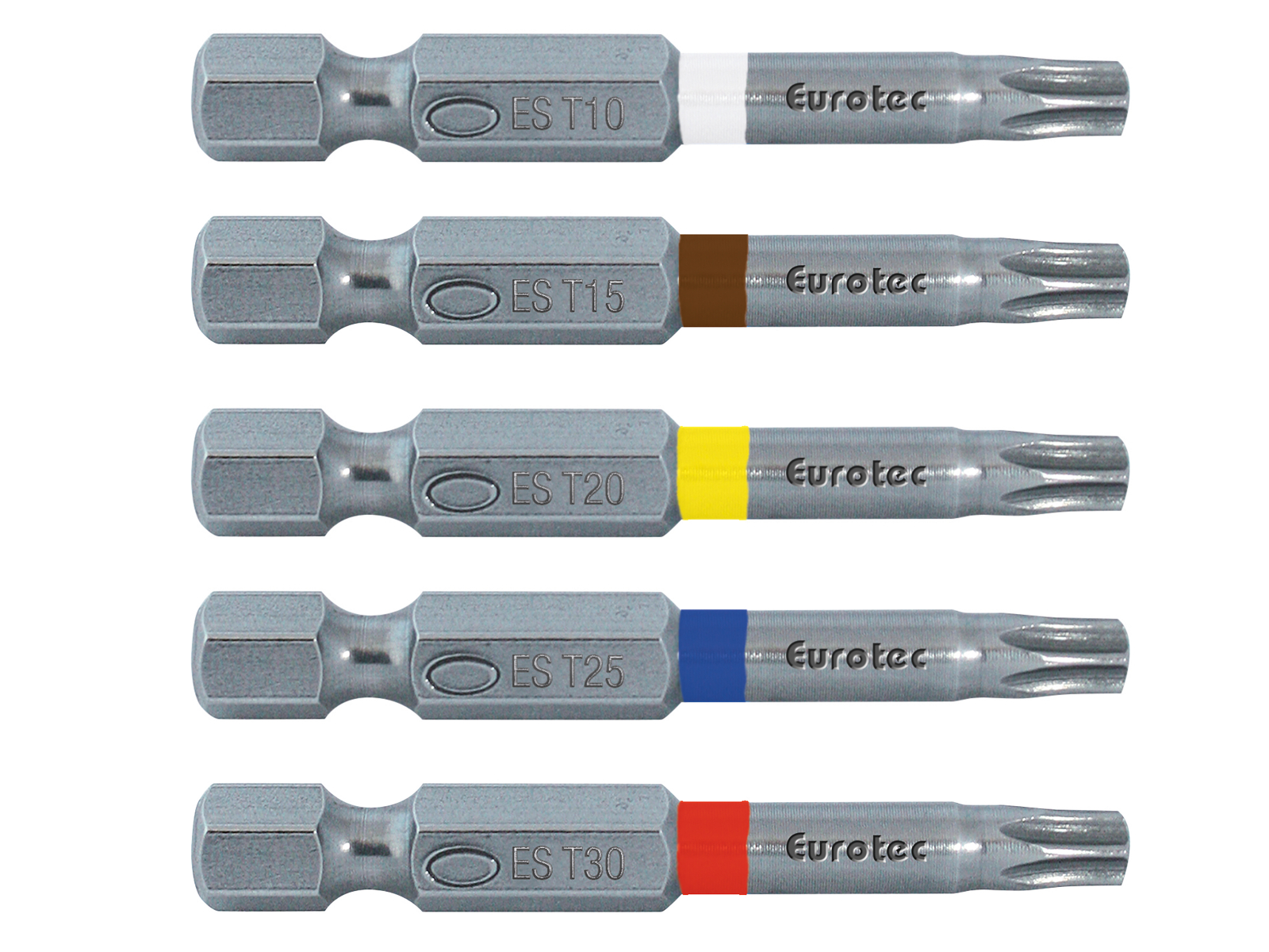 Mit dem Farbleitsystem von Eurotec Durch die Edelstahl Lang-Bits von Eurotec entsteht kein Abrieb von Fremdstahl beim Einschrauben von Edelstahlschrauben. Somit wird die Fremdrostgefahr effektiv verhindert.