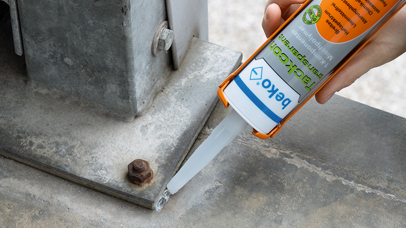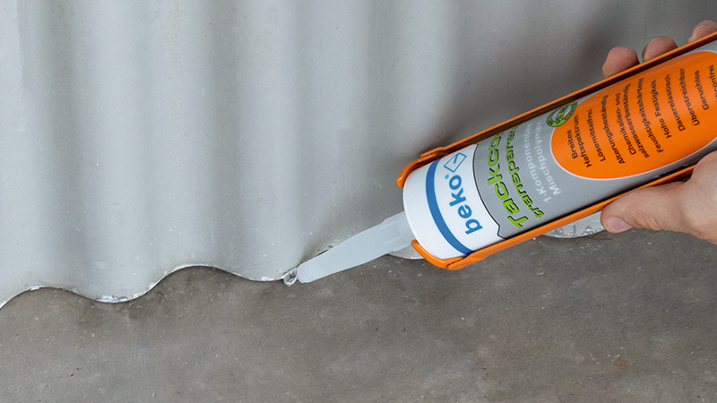 Für normale Kartuschenpressen, glättbar mit beko Glättemittel, kombiniert Dichten und Kleben, reagiert mit Feuchtigkeit