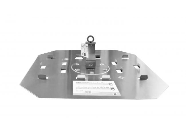 Grundplatte mit senkrechten Arretierungslaschen aus Aluminium, ca. 75 x 75 cm