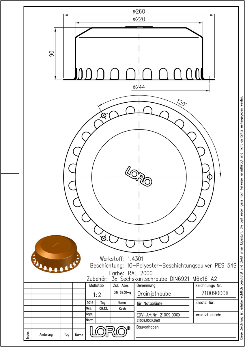 LORO-X DRAINJET/RAINSTAR Notablauf-Haube für Flachdachabläufe