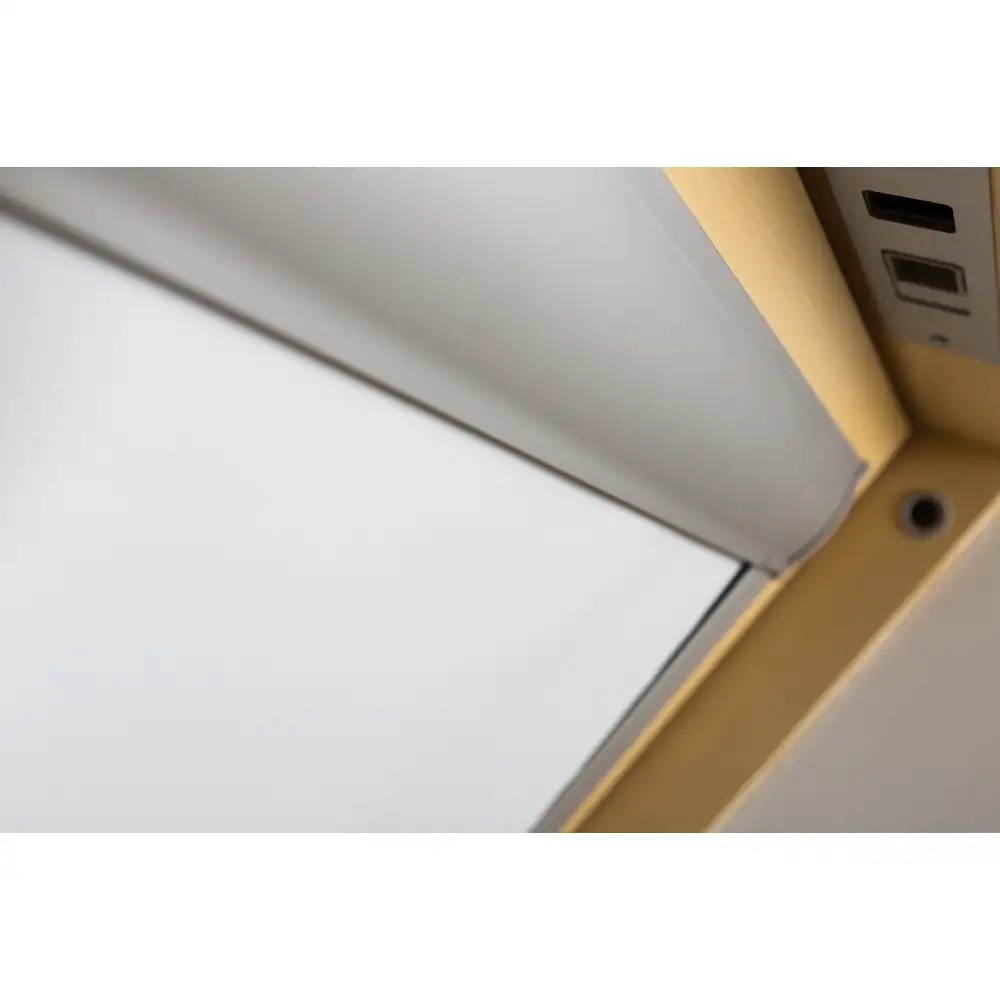 - Der Kunststoff, der den Werkstoff des Rollos auf der Seite der Glasscheibe bedeckt, reduziert den Lichteinfall und beschränkt die Wärme im Sommer sowie Wärmeverluste im Winter. Der Werkstoff des Rollos schützt auch vor schädlicher UV-Strahlung,
