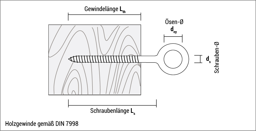 - Die Ösenschraube kann auch direkt in Holz eingeschraubt werden