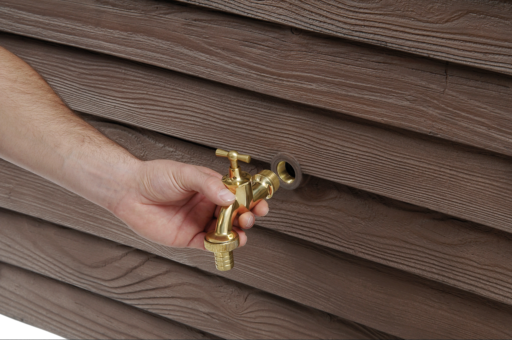 - Besonders robuster Deko-Regenspeicher in täuschend echter Holzoptik zur Aufstellung an der Hauswand
