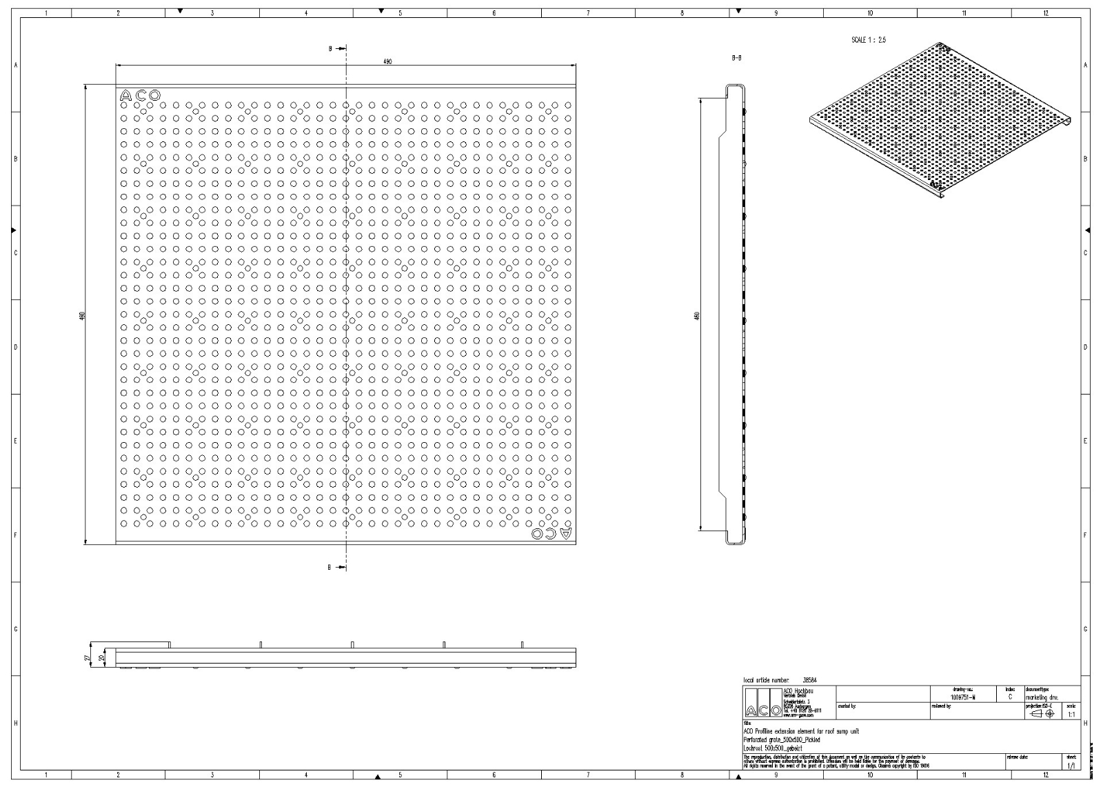 ACO Profiline Lochrost für Dachaufsatz Edelstahl für Fassadenentwässerung