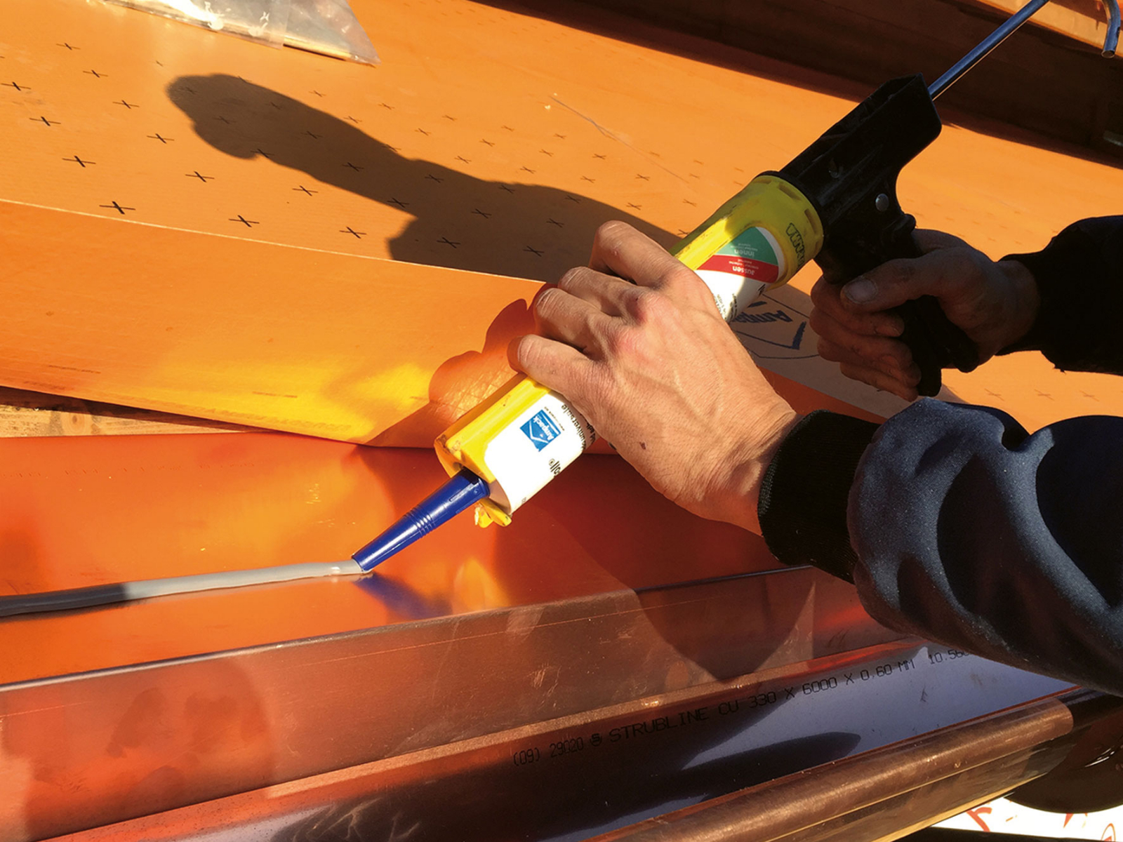 Perfekt geeignet für die Verklebung von TPU-Bahnen, für den Anschluss einer Bahn auf das Traufblech, die Überlappungsverklebung von Fassadenbahnen, die Montage der Fassadenbahnen auf Metallprofilen und den Anschluss an Baukörper.