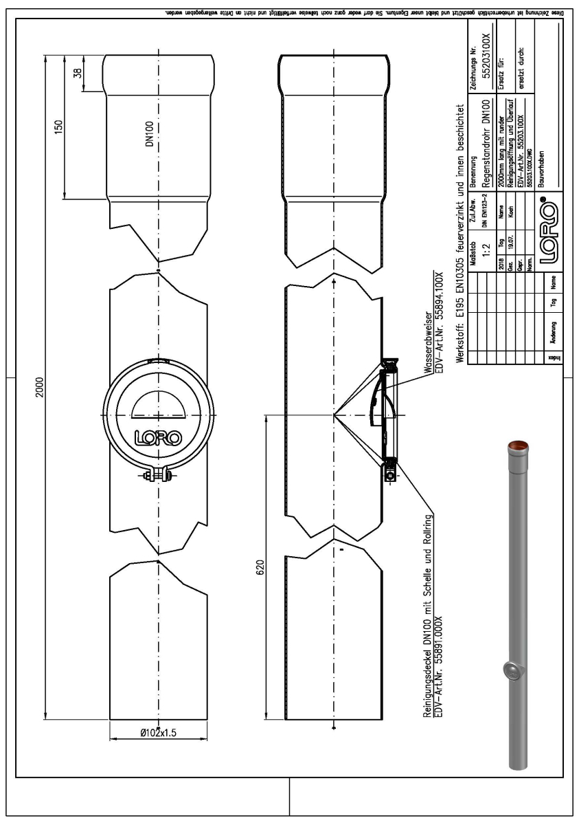 LORO-X Regenstandrohr, aus Stahl, feuerverzinkt, rund, mit Reinigungsöffnung und Reinigungsdeckel mit Sicherheitsüberlauf, nach DIN EN 1123, mit erhöhtem Qualitätsstandard gemäß RAL-Gütezeichen GZ-694, mit 2-Kammern-Steckmuffenverbindung, Baustoffklasse A1, formstabil, bruchfest, rückstausicher, langlebige Innenbeschichtung gemäß DIN EN ISO 2178 auf Basis einer 2K-Epoxid-Kombination, Farbton: Rotbraun, 2000 mm DN 100