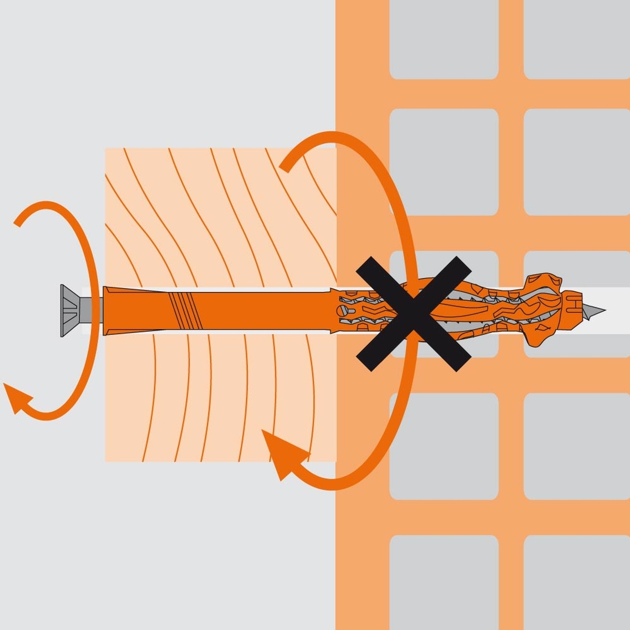 - Verhindert das Mitdrehen im Bohrloch (speziell auch in labilen Baustoffen)