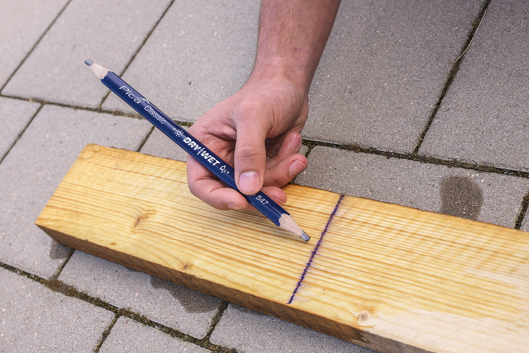 Spezial-Markierstift – auf trockenem und nassem Holz