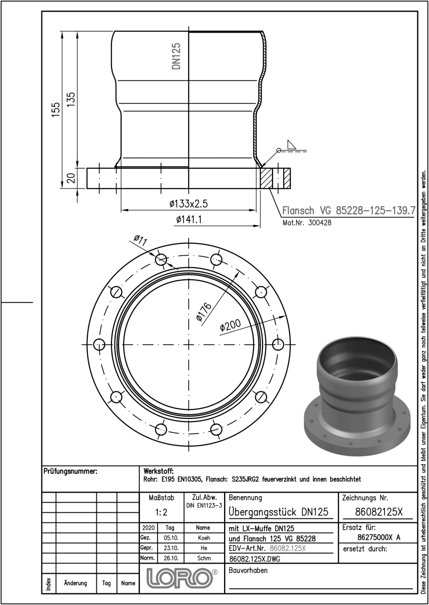 LORO-X Übergangsstück mit VG-Flansch 85228 und Steckmuffenverbindung