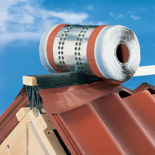 Der qualitätsstarke Verbund aus Aluminium und hochluftdurchlässigem Nadelvlies erlaubt einen schlagregen- und flugschneesicheren First- und Gratabschluss.